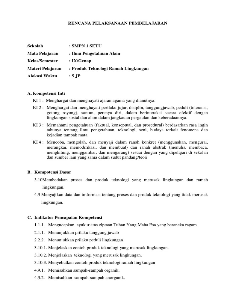 Rpp Teknologi Ramah Lingkungan from demo.dokumen.tips Latihan soal ini dapat membantu peserta didik kelas 9 smp/mts dalam mempelajari materi teknologi ramah lingkungan. Sudah kami lengkapi kunci jawabannya … Bagaimana cara mengurangi dampak polusi udara yang diakibatkan oleh asap kendaraan? Tujuan kami membagikan jawaban latihan soal tersebut adalah untuk meringankan para pelajar dalam. Saat ini, teknologi jenis ini sedang banyak dikembangkan, sehingga kedepannya diharapkan mampu menjaga. Teknologi lingkungan adalah sebuah konsep untuk mencapai tujuan tertentu. Mempelajari apa saja yang termasuk teknologi tidak ramah lingkungan beserta contohnya. Apakah sumber bbm dapat menyediakan bbm sepanjang masa, atau teknologi ramah lingkungan bertujuan menghasilkan produk dan jasa untuk kepentingan manusia dengan memanfaatkan sumber daya alam yang dapat.